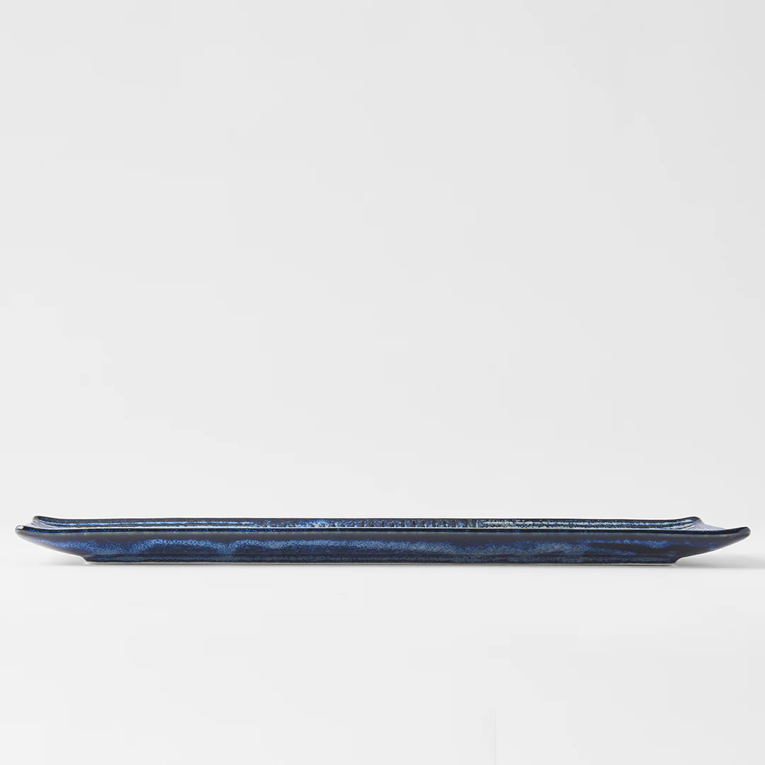 Plate Rectangular 33x10cm Lines Dark Blue Glaze