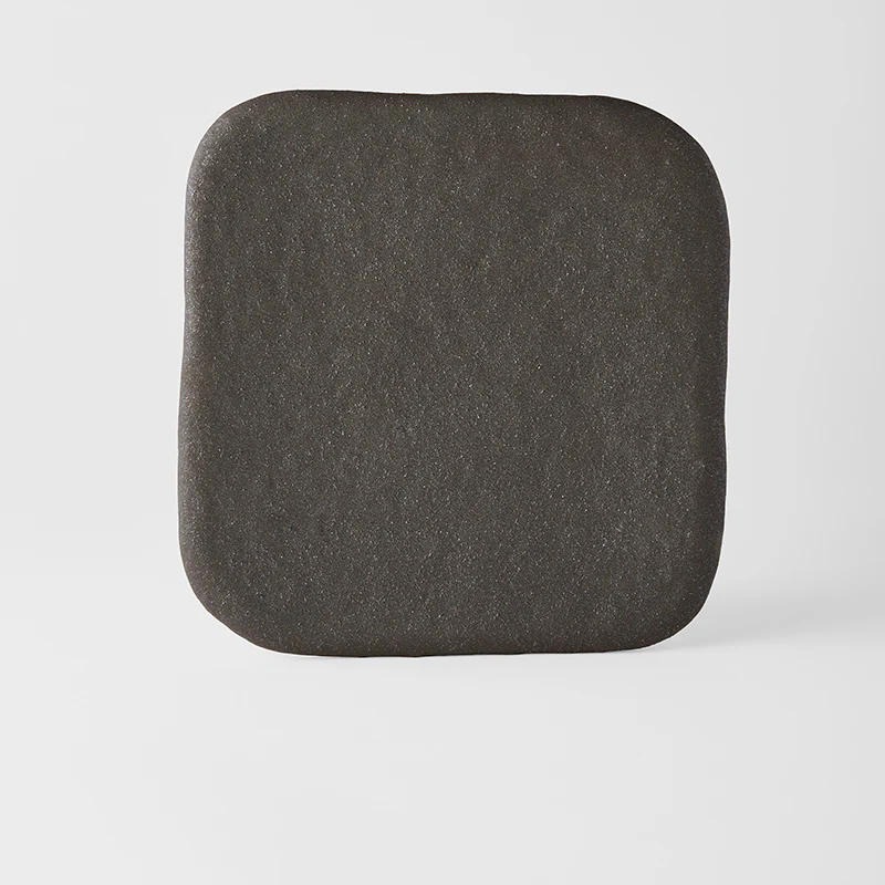 This square plate is crafted in Japan from stoneware, a type of ceramic known for its durability. The plate features a unique textured glaze that is reminiscent of natural stone. This textured surface adds visual interest and a touch of organic style to your table setting.